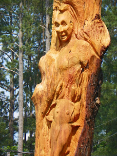 Here are a couple of pictures taken on our "Uncertain" visit. This is the totem pole for the Caddo Lake. There is the Ivory Billed Woodpecker on top, a Caddo Native American, a catfish, a frog, and an alligator on the pole. Can you spot them all?