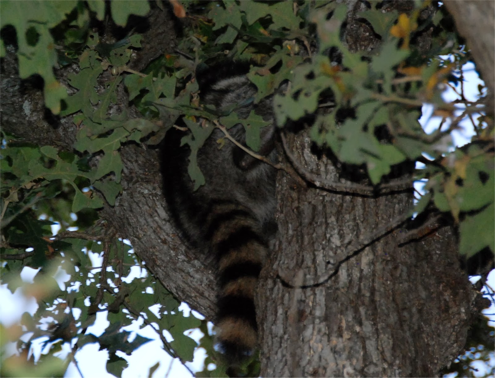A passing boat scared a young raccoon up a tree. He just thought he was hiding, lol...